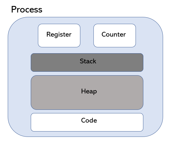 - 한 프로세스 안의 여러개의 프로세스들은 Code, Data, Heap은 공유하고, 각각의 Stack을 가진다.