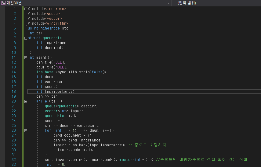 어떻게 할까 생각을 하다가 중요도를 따로 담은 vector를 소팅을 시키고