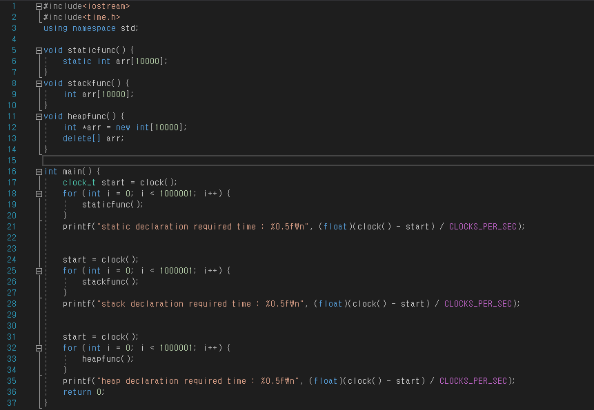 1. 배열을 정적영역에 선언해서 할당 받는 함수.