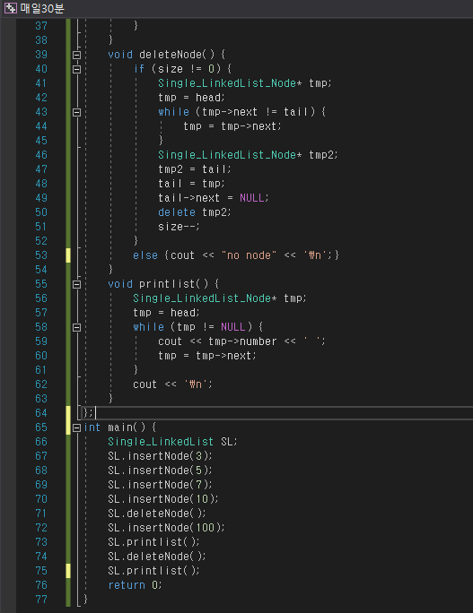 밑의 내가 구현한 싱크드 리스트의 코드의 경우  tail에 삽입 삭제를 하게끔 설정하고 구현하였는데