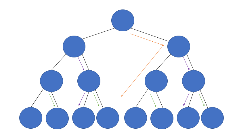 - 각 노드가 삽입 될 때 (heap을 구성하기 위해) 자신의 자리를 찾아 갈 때 규칙을 한번은 오른쪽으로 내려가고