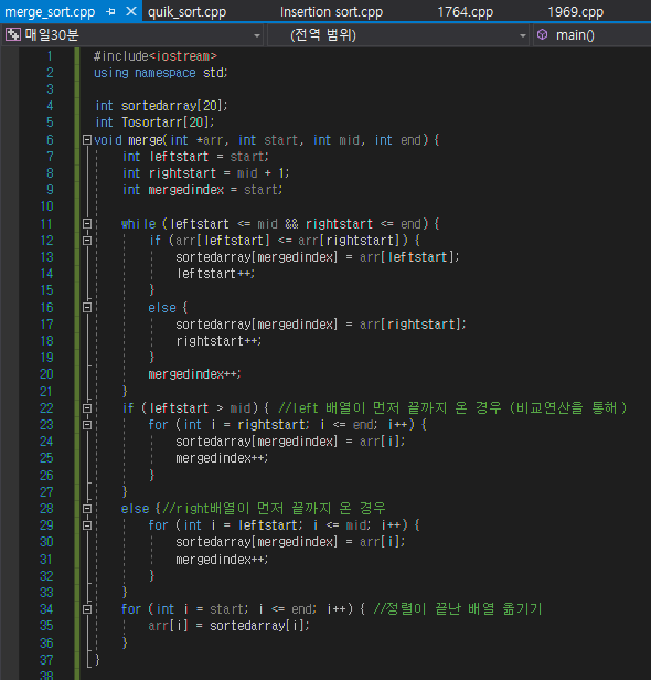 - 모두 merge를 하면 sort가 완료된 상태이다.