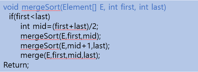 - 원소들 끼리 대소를 비교해서 정렬하는 알고리즘 중에서는 최적의 알고리즘 이다.(O(nlogn))
